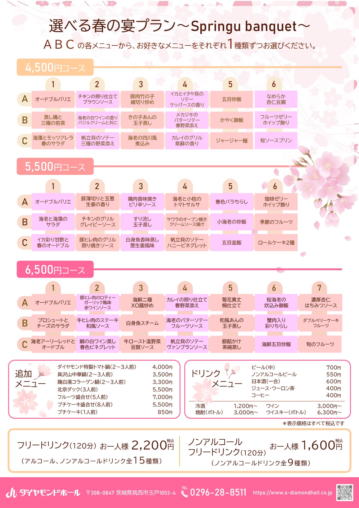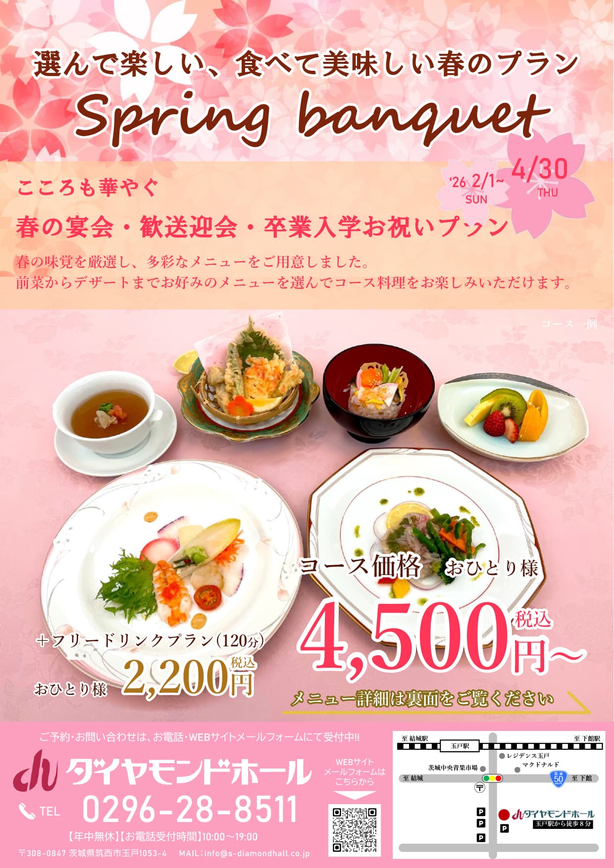 こころも華やぐ 春の宴会・歓送迎会・卒業入学お祝いプラン 2月1日(日)~4月30日(木)