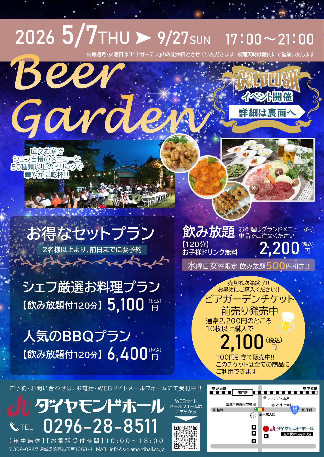 Beer Garden 2026【17:00~21:00 5.7(木)~9.27(日)まで】